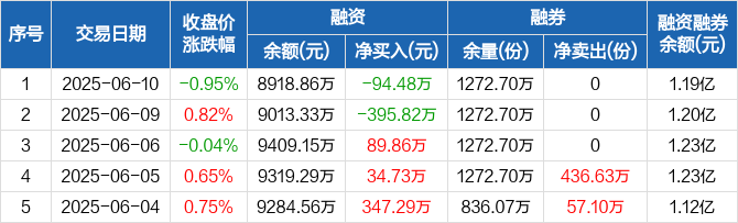 中证500ETF融资融券信息显示,2025年6月10日融资净偿还94.48万元;融资余额8918.86万元,较前一日下降1.05%。