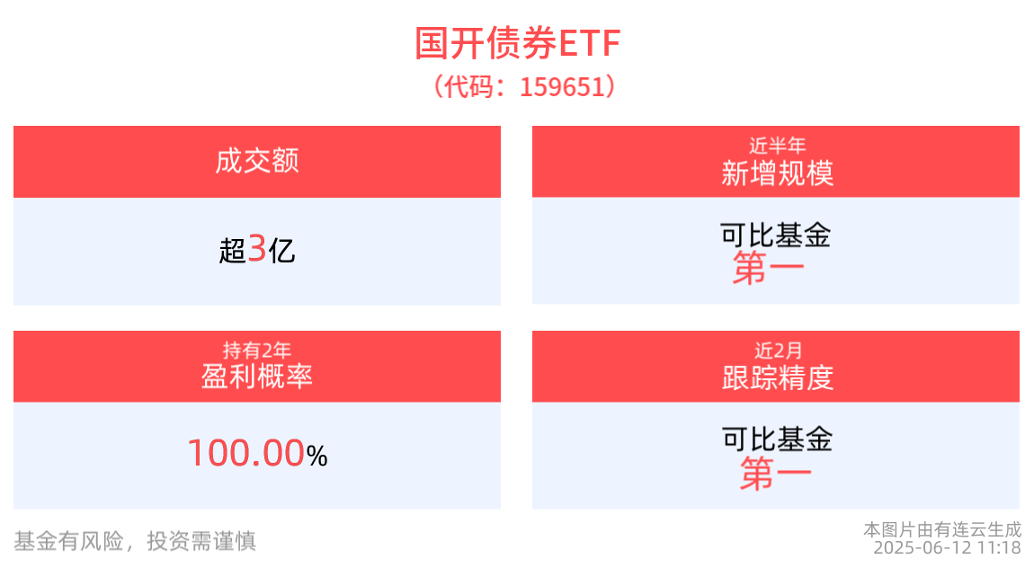 截至2025年6月12日 11:18,国开债券ETF(159651)多空胶着,最新报价106.12元。拉长时间看,截至2025年6月11日,国开债券ETF近1年累计上涨1.98%。