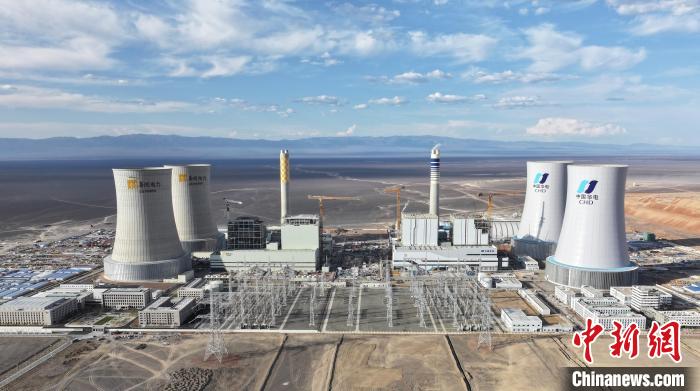 6月13日,新疆天山北麓戈壁能源基地首批2台100万千瓦煤电机组顺利通过168小时满负荷试运,图为基地4×100万千瓦煤电机组。(中国华电供图)
