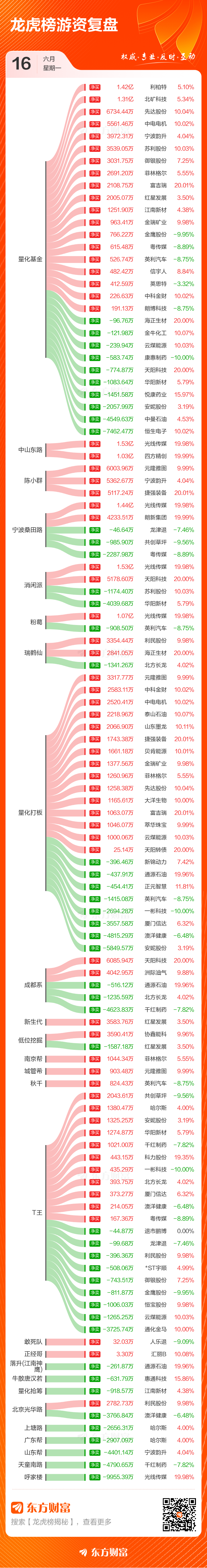 6月16日共有75只个股(含1只可转债)上榜龙虎榜,总上榜成交额209.21亿元。上榜个股中净买入额最高的是光线传媒,金额为4.91亿元。