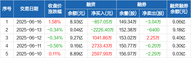 建设银行融资融券信息显示,2025年6月16日融资净偿还857.05万元;融资余额8.93亿元,较前一日下降1.25%。