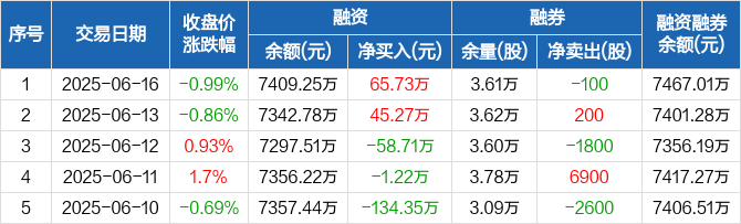 永兴股份融资融券信息显示,2025年6月16日融资净买入65.73万元;融资余额7409.25万元,较前一日增加0.91%。
