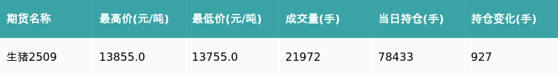 生猪主力合约收涨0.11%