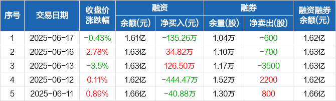 三人行融资融券信息显示,2025年6月17日融资净偿还135.26万元;融资余额1.61亿元,创近一年新低,较前一日下降0.83%。