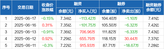 齐鲁银行融资融券信息显示,2025年6月17日融资净偿还113.42万元;融资余额7.34亿元,较前一日下降0.15%。