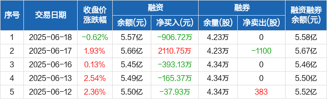 海目星融资融券信息显示,2025年6月18日融资净偿还906.72万元;融资余额5.57亿元,较前一日下降1.6%。