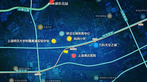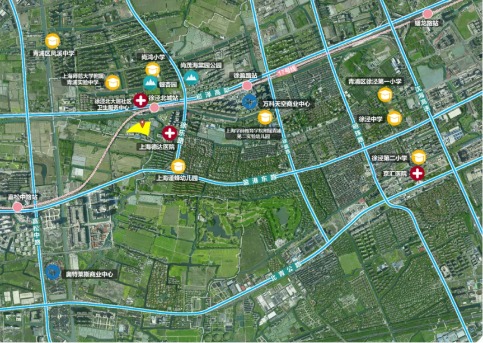 地块两公里范围内,有大型商业综合体天空之城、商超Costco等;教育方面,附近拥有上师大附中、青浦世外等。
