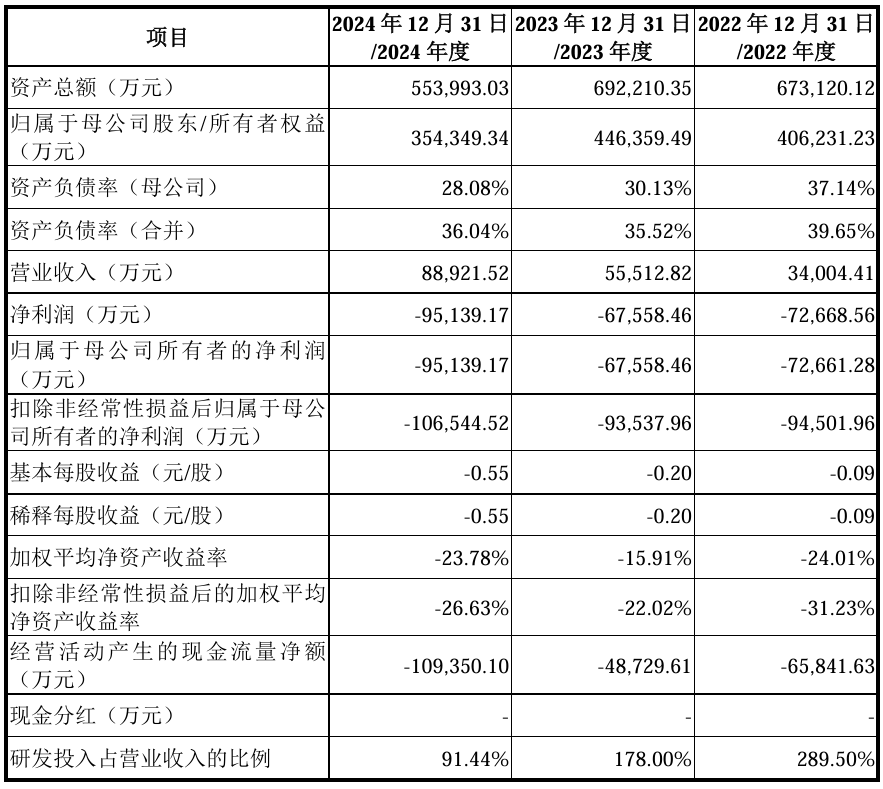 招股书显示,于2022年度、2023年度及2024年度(简称“报告期内”),兆芯集成实现营业收入约为3.4亿元、5.55亿元、8.89亿元人民币;同期,公司实现净利润分别约为-7.27亿元、-6.76亿元、-9.51亿元人民币。经计算,公司近三年实现归属净利润累计亏损约23.54亿元。