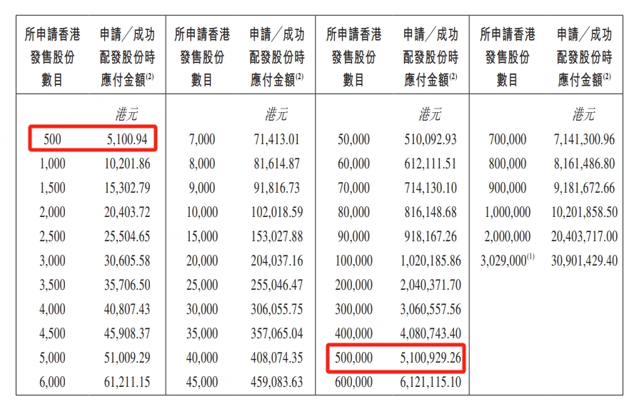 乙组门槛为50万股,申购所需资金约510.09万港元。