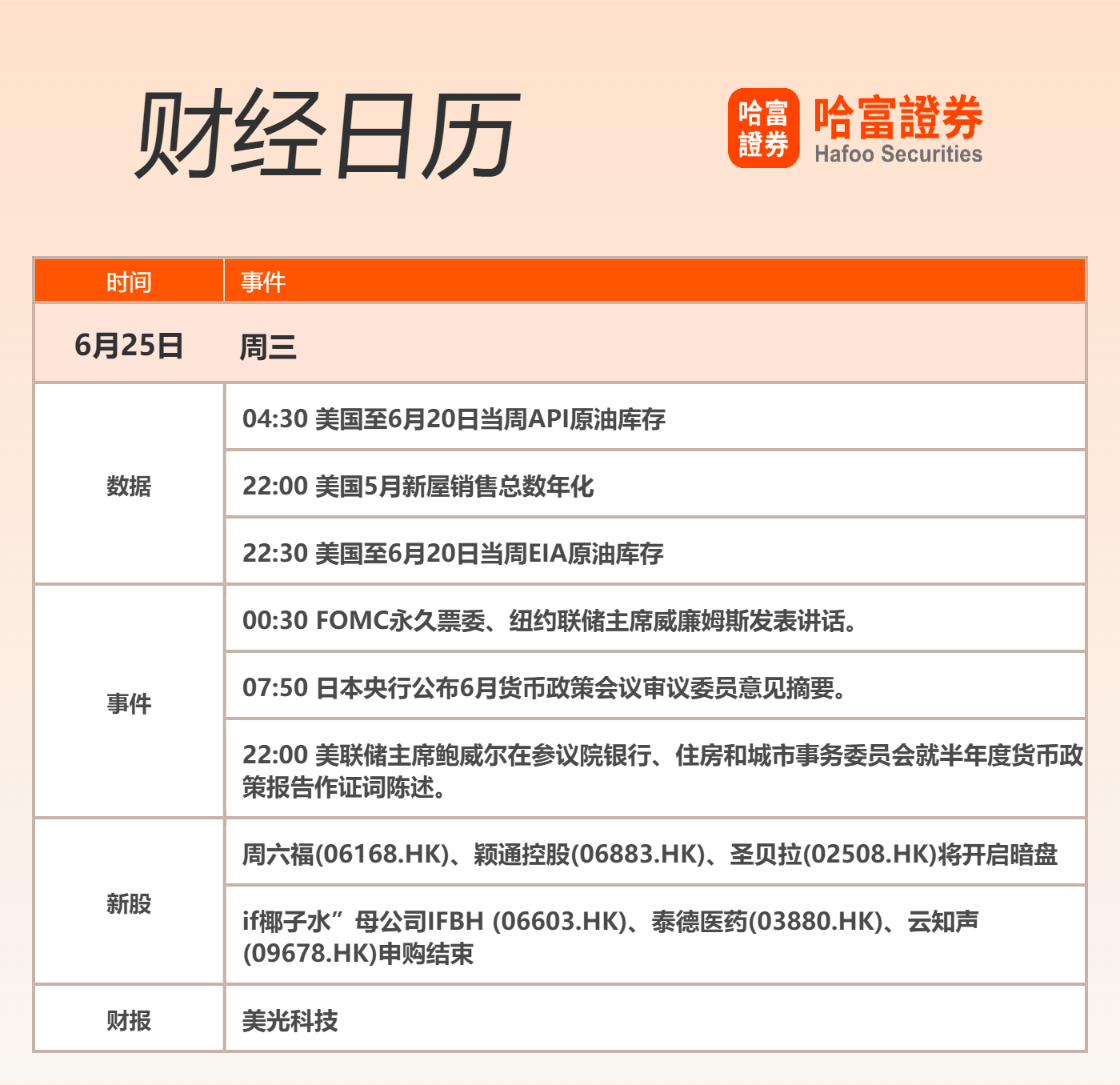 摘要:中东紧张局势降温,鲍威尔不排除7月降息可能,标普、纳指均创4个月以来收盘新高;外资巨头“超配”中国股票,中概指数大涨超3%;国际清算银行警告!circle隔夜跌超15%。