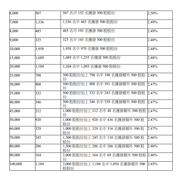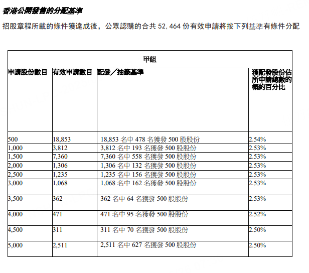圣贝拉公布招股结果,香港公开发售接获193倍认购,一手(500股)中签率2.54%,认购2.5万股获稳派一手。按回补机制,公开发售股份已增至4,771万股,占发售总数43.48%。国际发售录得15.59倍认购。招股价6.58港元,集资净额6.3亿港元。股份预期今日(26日)上市。