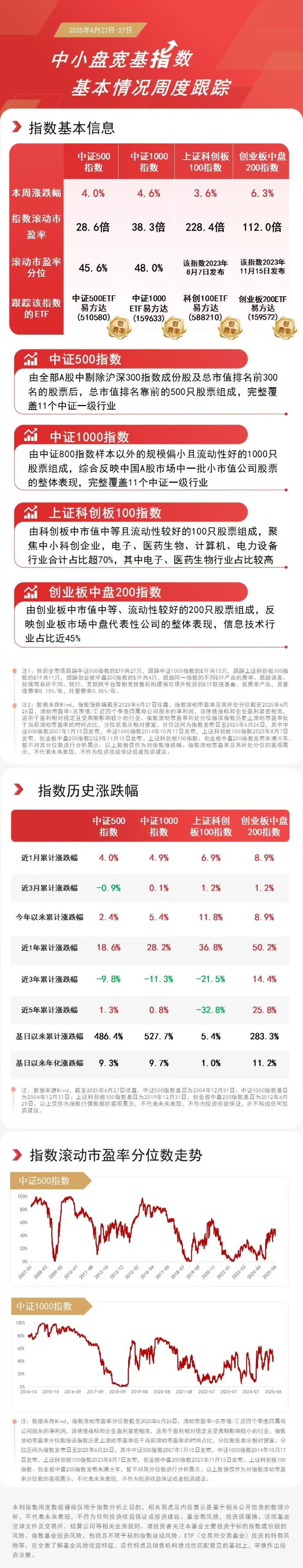 本周,中证500指数上涨4.0%,中证1000指数上涨4.6%,科创100指数上涨3.6%,创业板中盘200指数上涨6.3%。