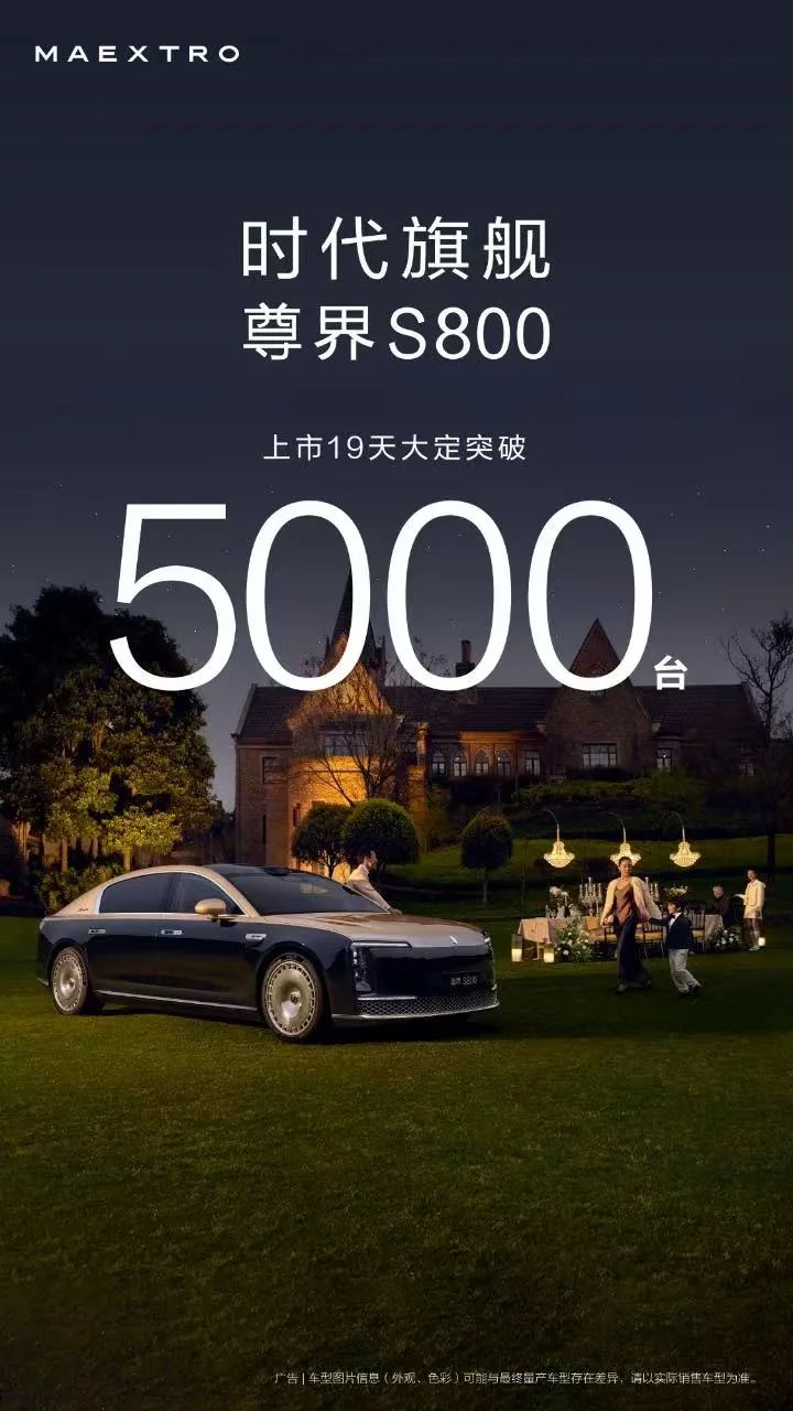 尊界S800率先打响了百万级超豪华轿车市场的第一枪。自5月30日发布以来,市场对该款车型的讨论热度一直居高不下,最直接的反映便是尊界S800的销量表现:上市不到一个月,大定已经超过5000台,创造豪华品牌百万级豪车销售新纪录。