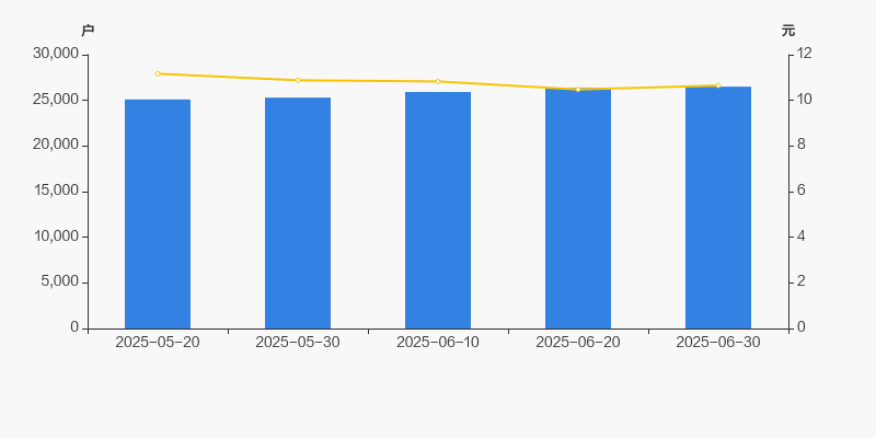 自2025年5月20日以来,公司股东户数连续4期上涨,截至目前增幅为5.58%。2025年5月20日至2025年6月30日区间股价下降4.66%。