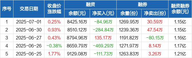 中证500ETF融资融券信息显示,2025年7月1日融资净偿还84.96万元;融资余额8425.16万元,较前一日下降1%。