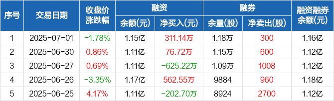 中熔电气融资融券信息显示,2025年7月1日融资净买入311.14万元;融资余额1.15亿元,较前一日增加2.79%。