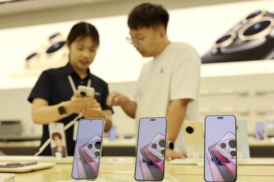 (7月9日,消费者在山东省滨州市一家手机专卖店选购手机。图片来源:新华社)