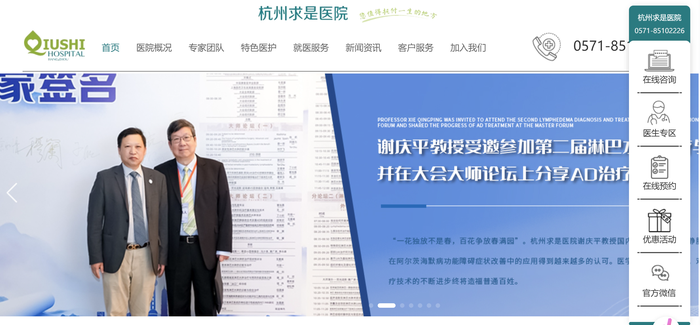 图片截取自杭州求是医院官网,图左为谢庆平。