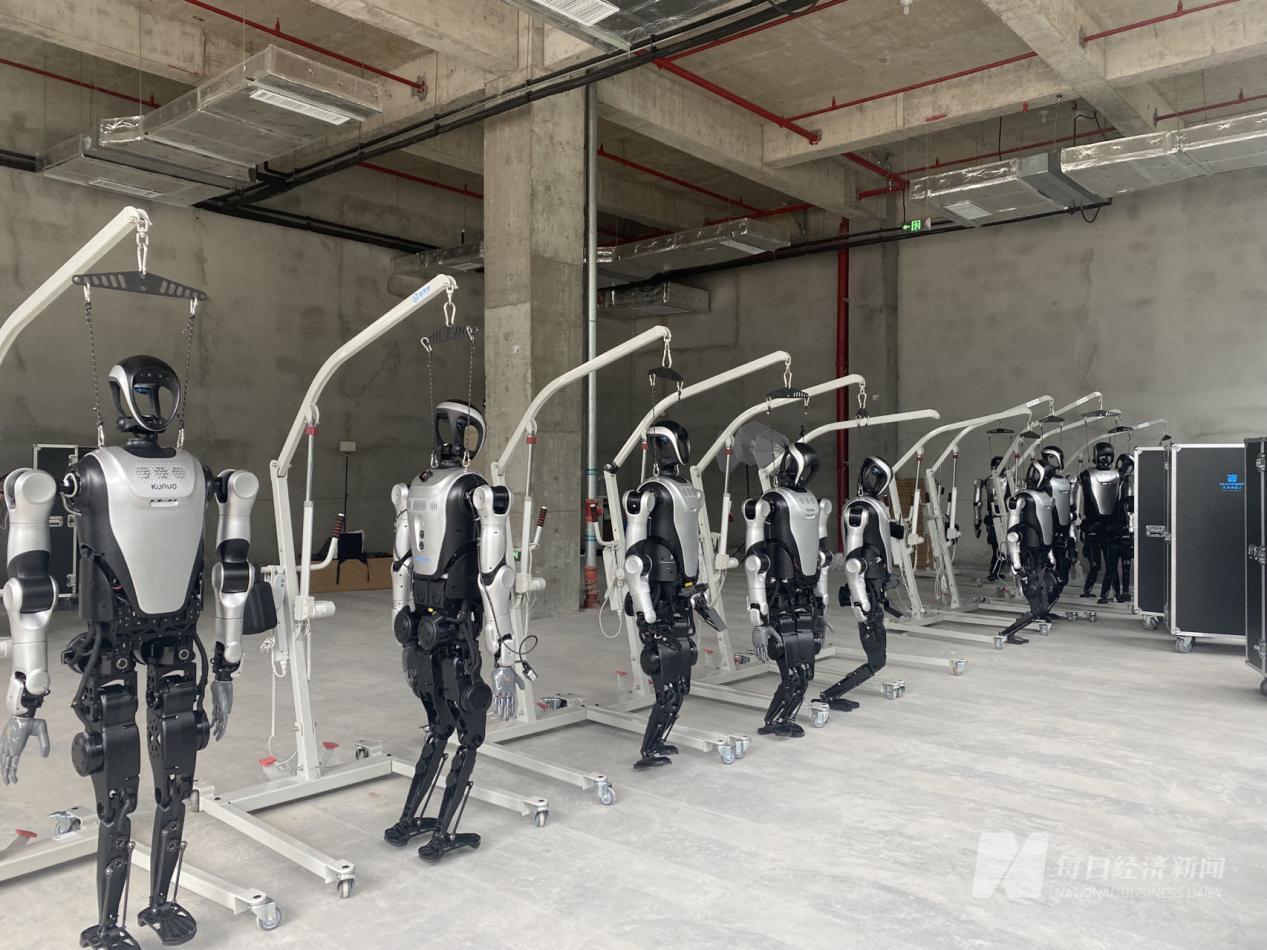训练场一楼摆放十多台即将参赛的乐聚机器人,图片来源:每经记者张宝莲摄