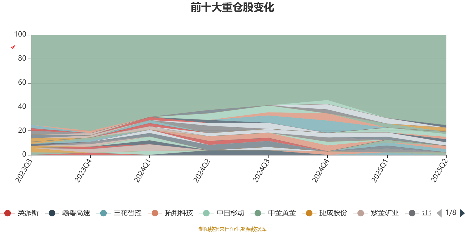 截至2025年二季度末,基金十大重仓股分别是中国太保、胜宏科技、高争民爆、安博通、芯原股份、新大陆、中金黄金、朗科智能、中文在线、彩讯股份。