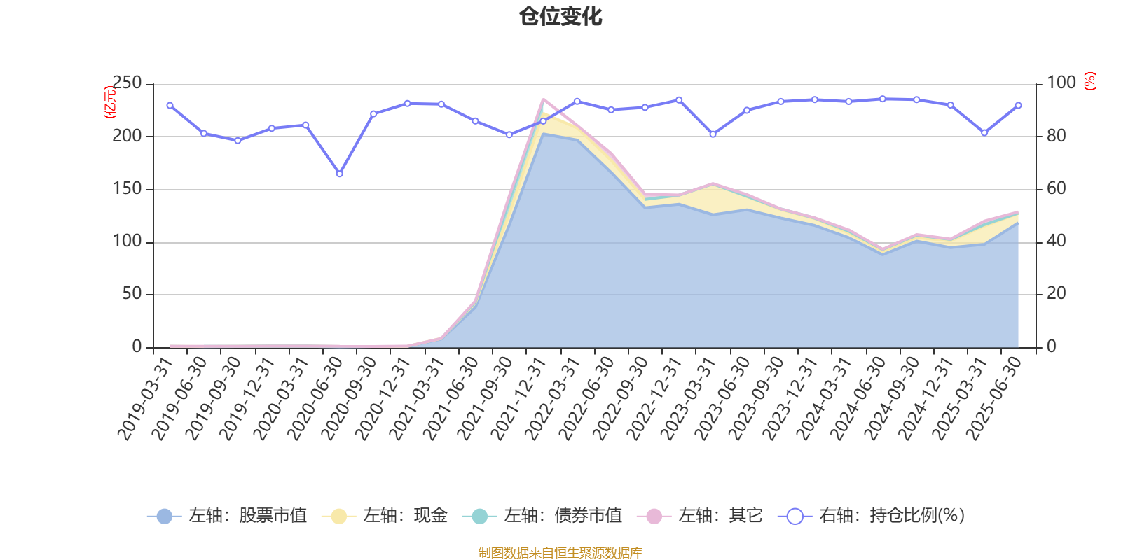 据定期报告数据统计,近三年平均股票仓位为90.91%,同类平均为80.33%。2024年上半年末基金达到94.38%的最高仓位,2020年上半年末最低,为65.95%。