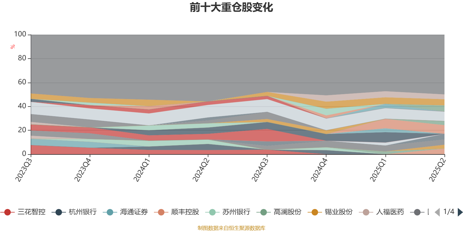 截至2025年二季度末,基金十大重仓股分别是华泰证券、科伦药业、民生银行、宁德时代、顺丰控股、中国平安、国泰海通、龙净环保、国盾量子、锡业股份。