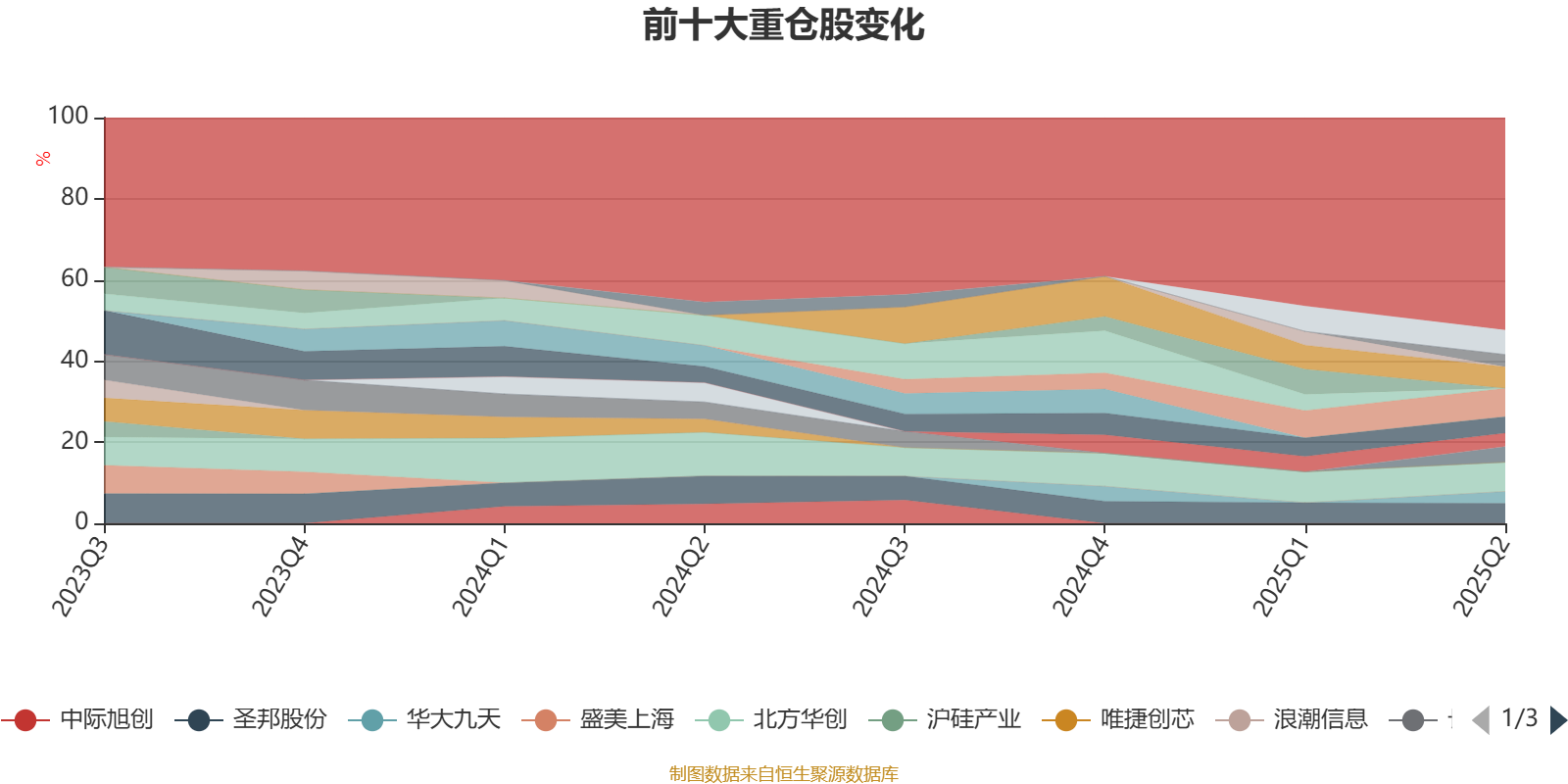 截至2025年二季度末,基金十大重仓股分别是北方华创、胜宏科技、兆易创新、海光信息、圣邦股份、中微公司、中航沈飞、中芯国际、深南电路、华大九天。