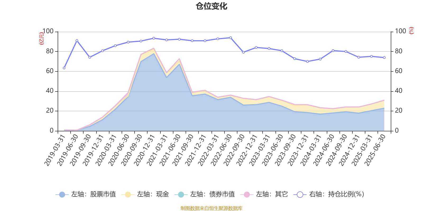 据定期报告数据统计,近三年平均股票仓位为77.2%,同类平均为85.78%。2022年上半年末基金达到93.86%的最高仓位,2019年一季度末最低,为63.4%。