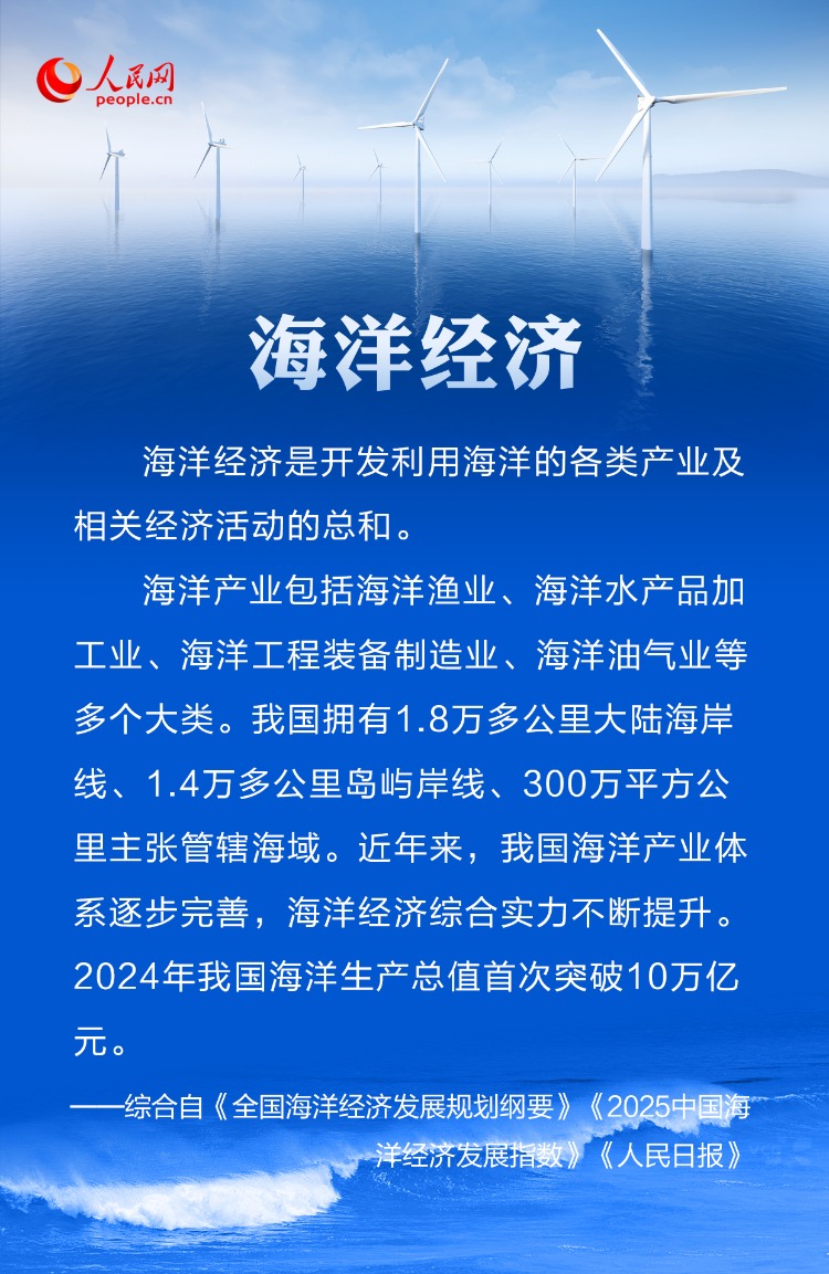 2024年,我国海洋经济总量首次突破10万亿元,为国民经济发展注入强劲“蓝色动能”。2025年7月1日,中央财经委员会第六次会议提出“推进中国式现代化必须推动海洋经济高质量发展,走出一条具有中国特色的向海图强之路”,将海洋经济置于中国式现代化的重要位置。伴随着海洋经济广度与深度的不断拓展,一系列涵盖科技前沿、生态环保、资源开发和管理创新的“新名词”不断涌现,成为洞察未来海洋经济图景的“新密码”。