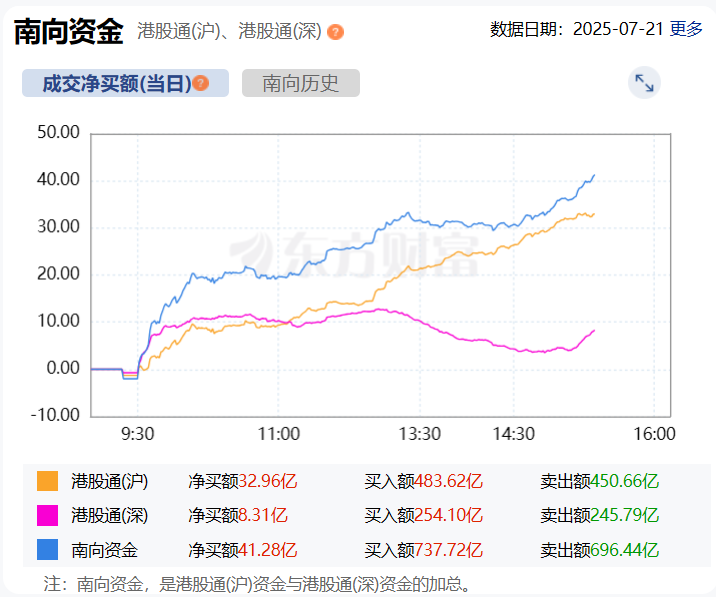 截至目前,南向资金净买入额达40亿港元。