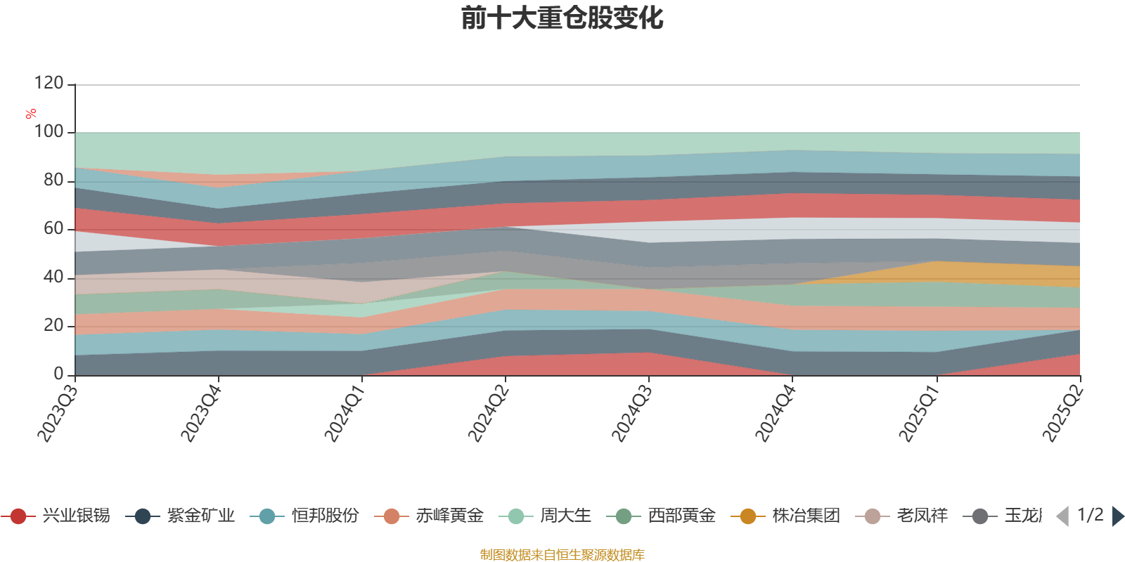 该基金持股集中度较高,且持股标的较为稳定,近2年前十大重仓股集中度长期超过60%。截至2025年二季度末,基金十大重仓股分别是紫金矿业、山东黄金、湖南黄金、山金国际、中金黄金、赤峰黄金、株冶集团、兴业银锡、盛达资源、西部黄金。