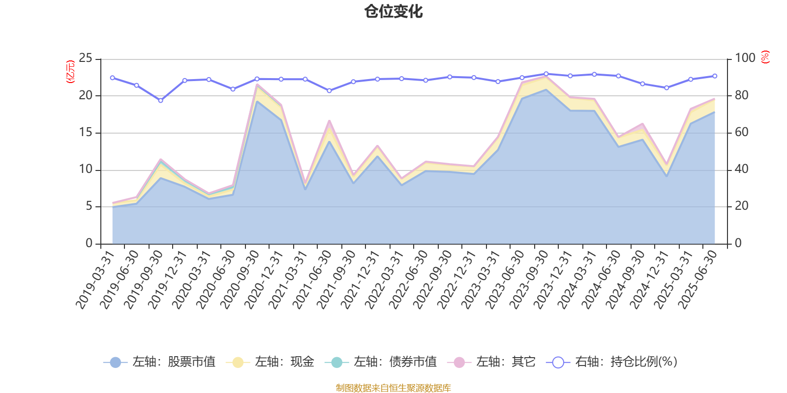 据定期报告数据统计,近三年平均股票仓位为89.5%,同类平均为84.87%。2023年三季度末基金达到91.98%的最高仓位,2019年三季度末最低,为77.55%。