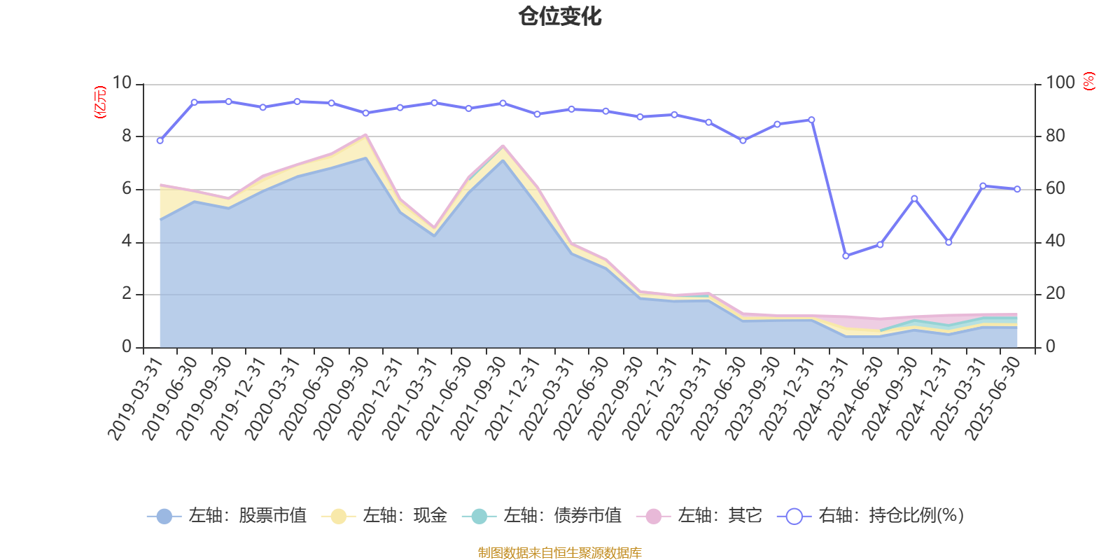 据定期报告数据统计,近三年平均股票仓位为66.9%,同类平均为46.3%。2019年三季度末基金达到93.35%的最高仓位,2024年一季度末最低,为34.78%。