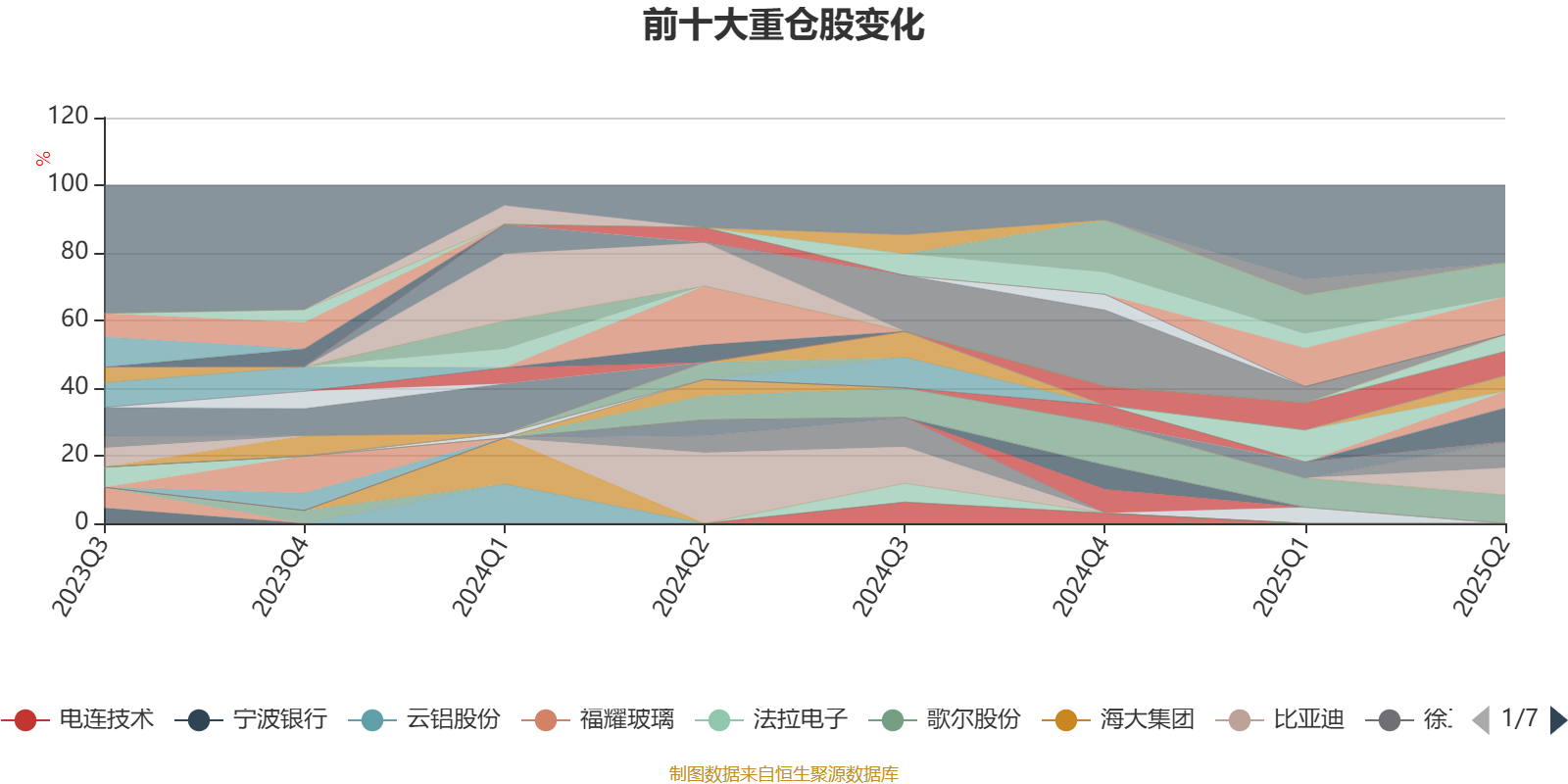 该基金持股集中度较高,近2年前十大重仓股集中度长期超过60%。截至2025年二季度末,基金十大重仓股分别是三环集团、人福医药、睿创微纳、云天化、海光信息、思特威、德赛西威、安集科技、鼎龙股份、新宙邦。