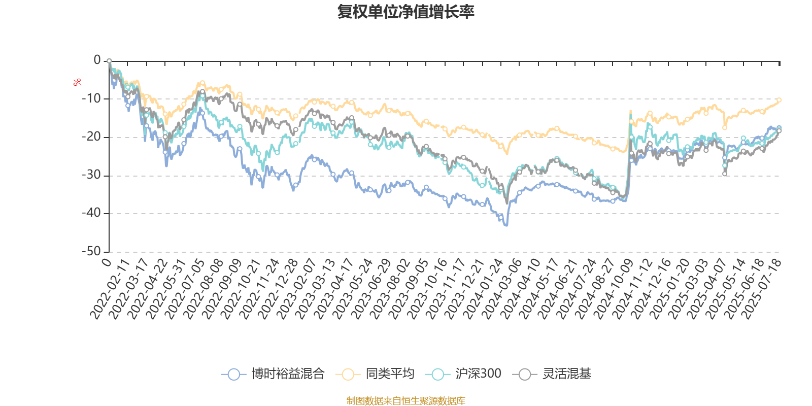 截至7月18日,博时裕益混合近三个月复权单位净值增长率为6.44%,位于同类可比基金39/119;近半年复权单位净值增长率为8.46%,位于同类可比基金23/119;近一年复权单位净值增长率为26.61%,位于同类可比基金13/119;近三年复权单位净值增长率为0.56%,位于同类可比基金54/119。
