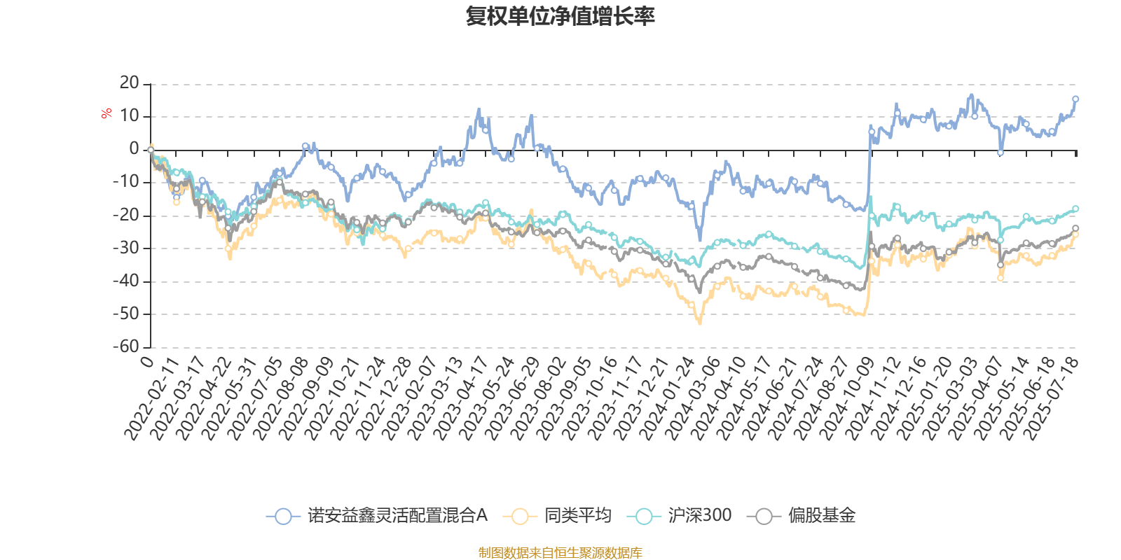 截至7月18日,诺安益鑫灵活配置混合A近三个月复权单位净值增长率为9.87%,位于同类可比基金184/328;近半年复权单位净值增长率为7.63%,位于同类可比基金203/328;近一年复权单位净值增长率为26.87%,位于同类可比基金173/312;近三年复权单位净值增长率为25.24%,位于同类可比基金30/249。