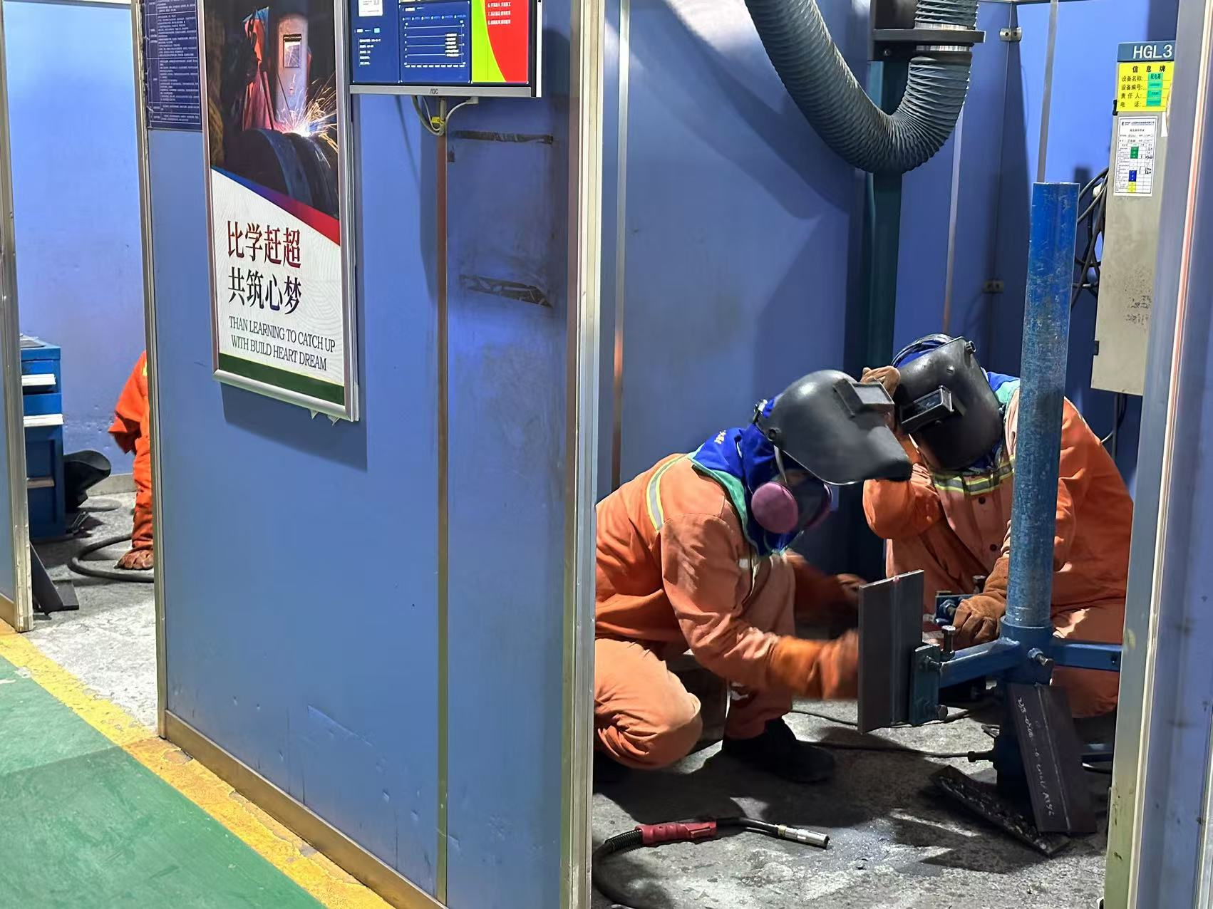 山东核电设备制造有限公司的工人在练习焊接核设备每经记者周逸斐摄