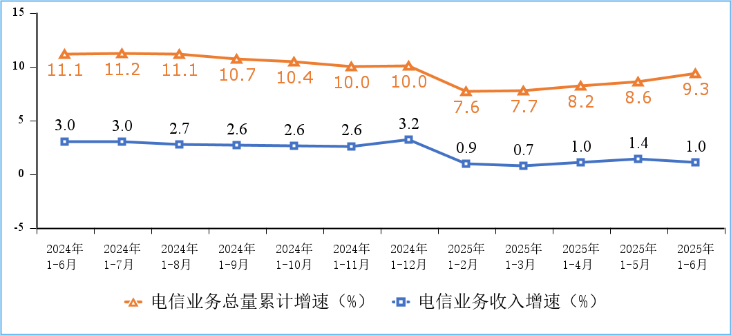 上证报中国证券网讯据工业和信息化部7月22日消息,工业和信息化部发布2025年上半年通信业经济运行情况。