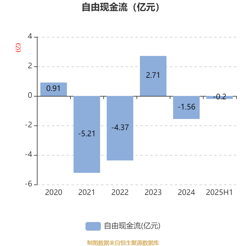 2025年上半年,公司经营活动现金流净额为-6001.4万元,同比增加7410.63万元;筹资活动现金流净额-2197.43万元,同比减少9693.59万元;投资活动现金流净额7471.99万元,上年同期为-1.27亿元。
