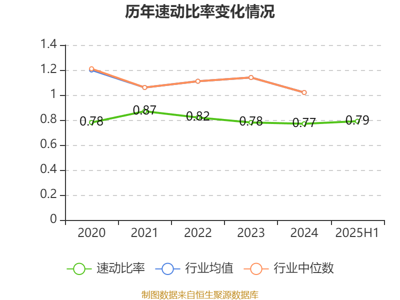 2025年上半年,公司流动比率为0.95,速动比率为0.79。