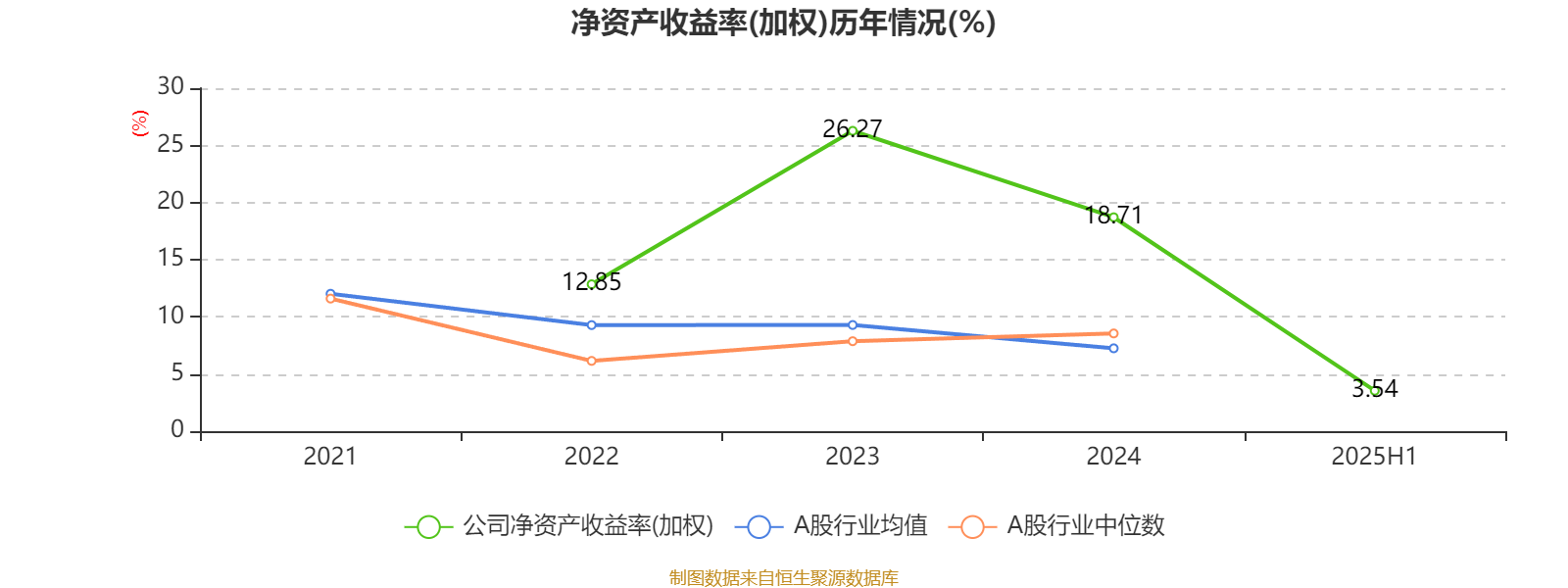 2025年上半年,公司平均净资产收益率为3.54%。