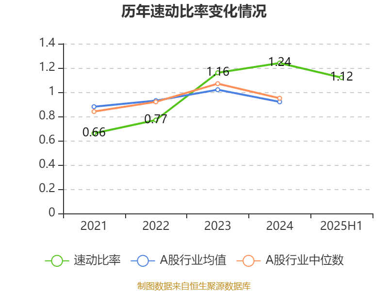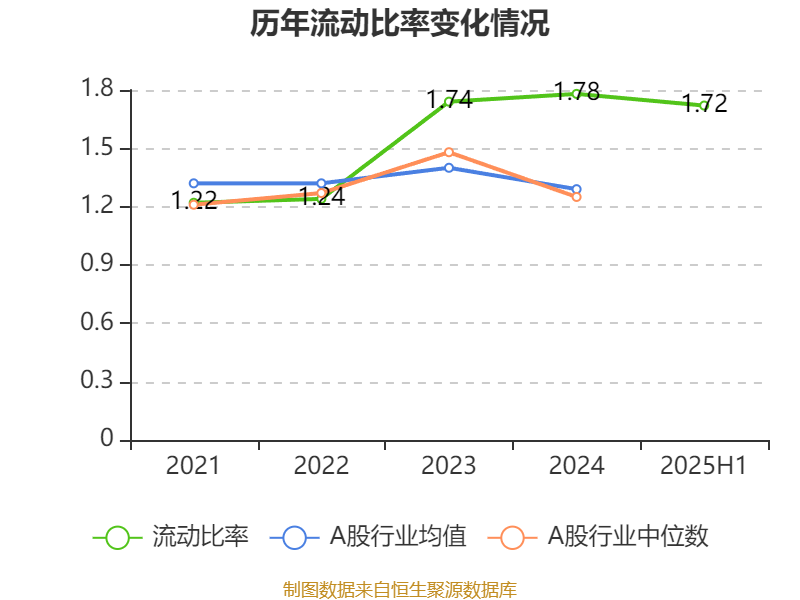 2025年上半年,公司流动比率为1.72,速动比率为1.12。