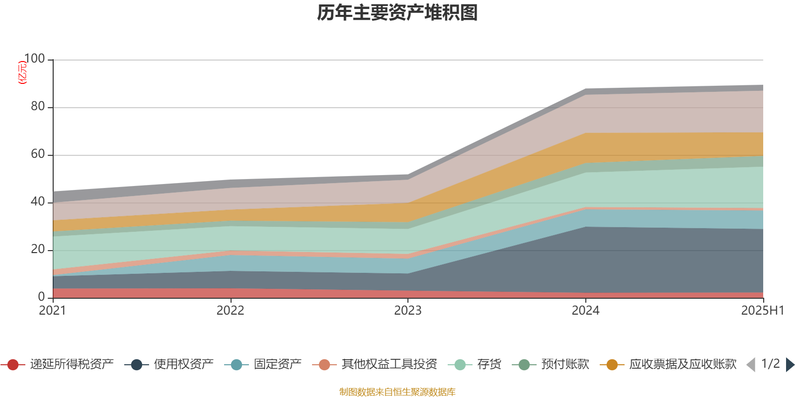 资产重大变化方面,截至2025年上半年,公司应收票据及应收账款较上期末减少21.97%,占公司总资产比重下降3.38个百分点;存货较上期末增加19.94%,占公司总资产比重上升2.93个百分点;使用权资产较上期末减少3.69%,占公司总资产比重下降1.71个百分点;货币资金较上期末增加9.93%,占公司总资产比重上升1.45个百分点。