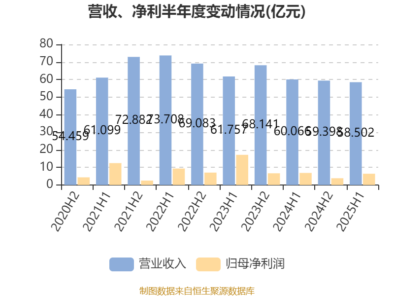 中证智能财讯中海石油化学(03983)9月29日披露2025年中期报告。报告期内,公司实现营业收入58.5亿元,同比下降2.6%;归母净利润6.41亿元,同比下降6.74%;据报告显示,中海石油化学基本每股收益为0.14元,平均净资产收益率为3.5%。