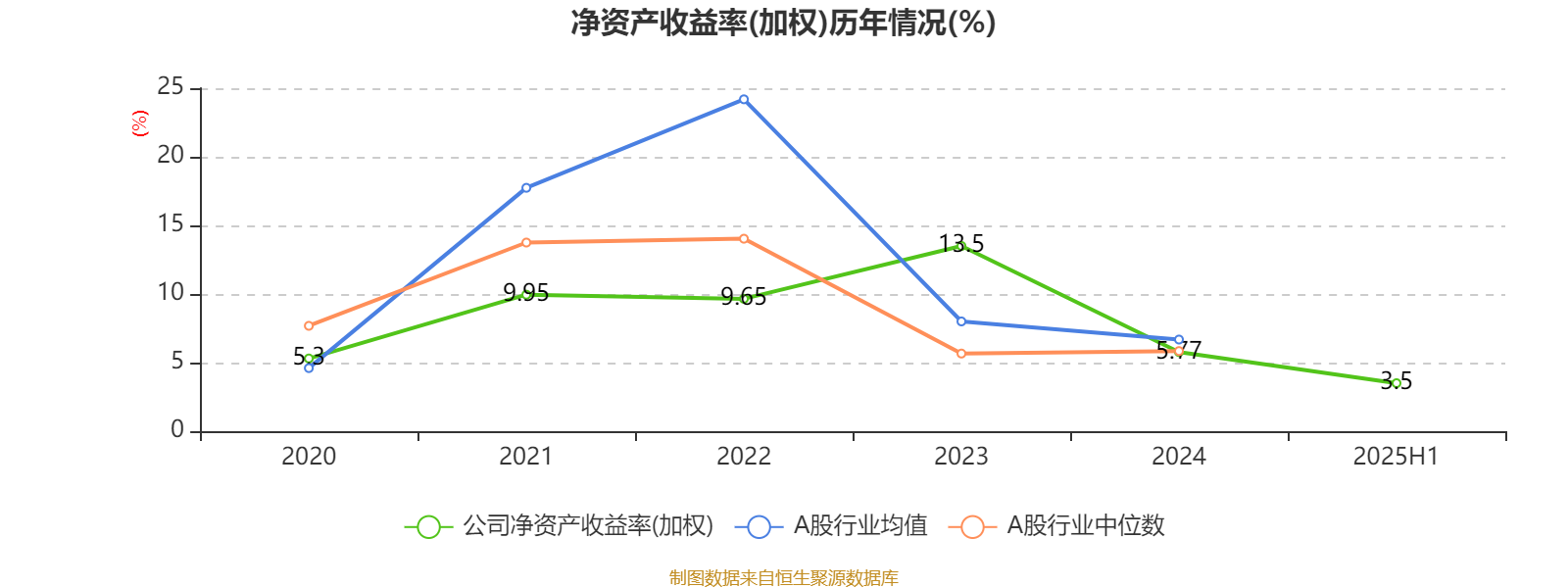 2025年上半年,公司平均净资产收益率为3.5%,较上年同期下降0.27个百分点。