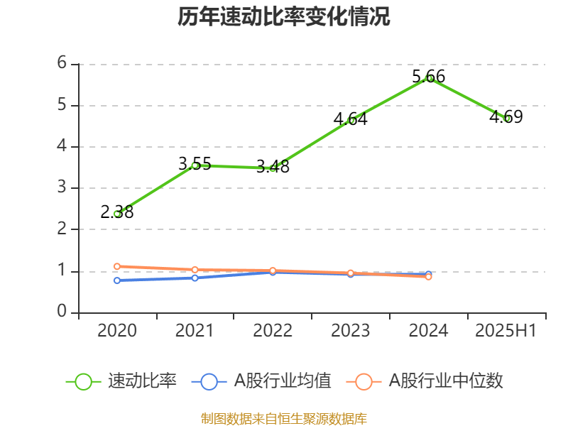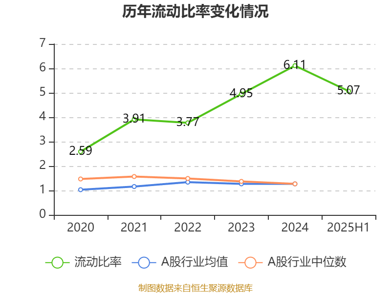 2025年上半年,公司流动比率为5.07,速动比率为4.69。