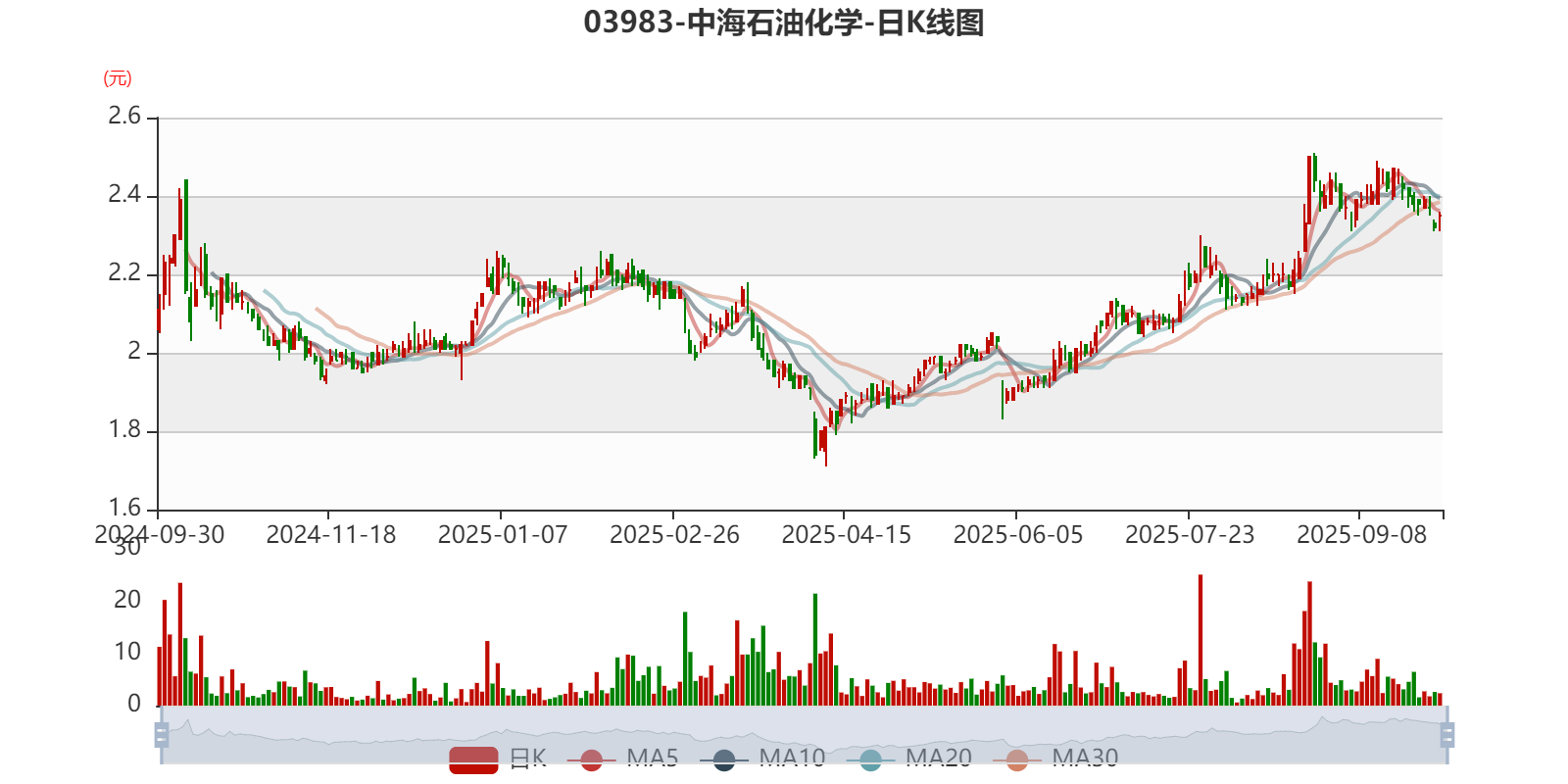 以9月29日收盘价计算,中海石油化学目前市盈率(TTM)约9.64倍,市净率(TTM)约0.53倍,市销率(TTM)约0.84倍。