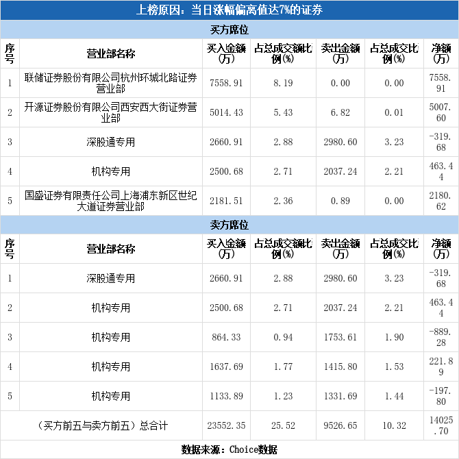 今日龙虎榜单上出现了深股通的身影,占据了买三、卖一的位置,净卖出319.68万元,占当日成交总额的0.35%。