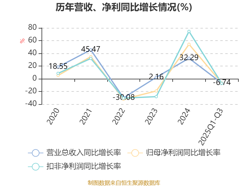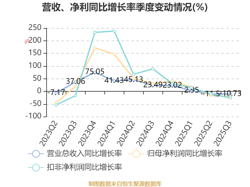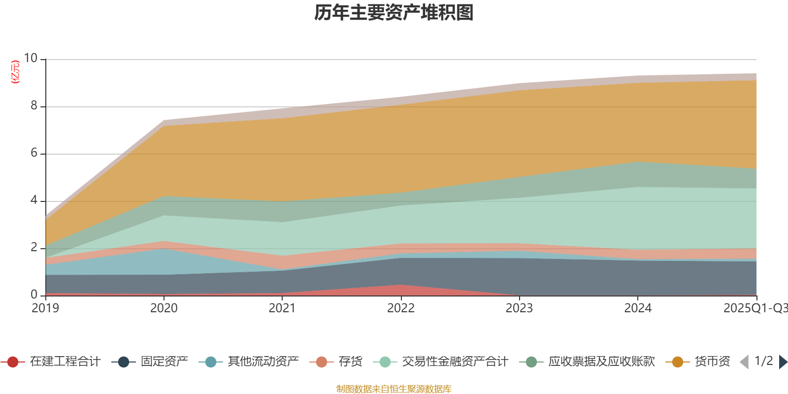资产重大变化方面,截至2025年三季度末,公司货币资金较上年末增加12.39%,占公司总资产比重上升4.02个百分点;应收票据及应收账款较上年末减少22.11%,占公司总资产比重下降2.65个百分点;交易性金融资产合计较上年末减少4.63%,占公司总资产比重下降1.6个百分点;固定资产较上年末减少4.08%,占公司总资产比重下降0.8个百分点。