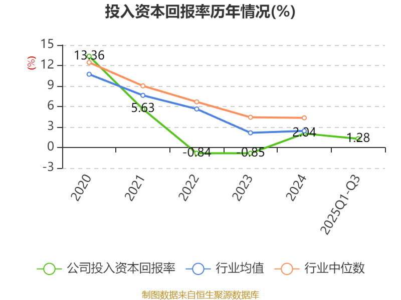 盈利能力方面, 2025年前三季度公司加权平均净资产收益率为0.7%,同比上升0.18个百分点。公司2025年前三季度投入资本回报率为1.28%,较上年同期下降0.18个百分点。